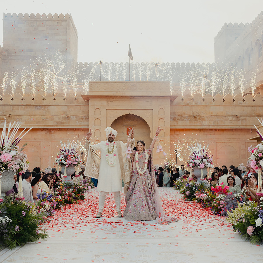 A colorful Punjabi-Tamil wedding hosted in Alila Fort Bishangarh, Jaipur!