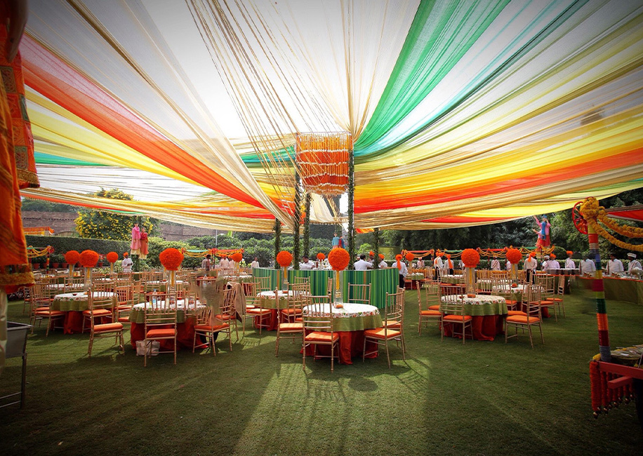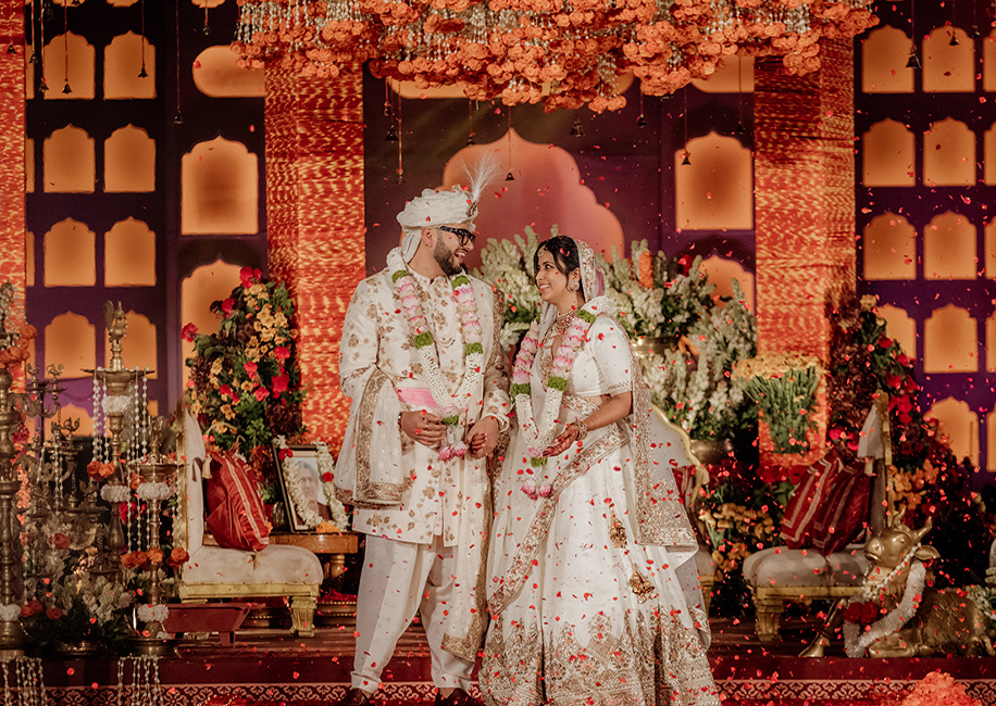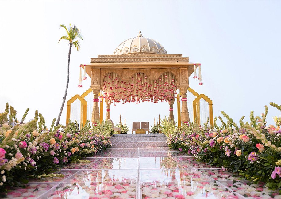 Flaunting radiant hues of amber, orange, and yellow, the couple’s wedding ceremony stood out beautifully surrounded by greenery!