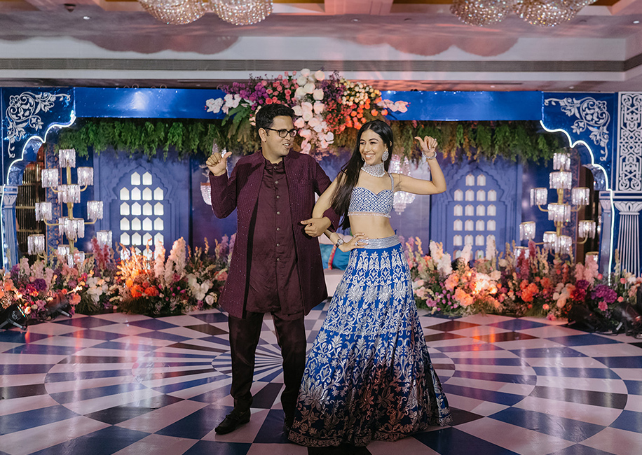 Adorned with bold electric blue hues and glamorous chandeliers, this bride’s mehndi celebration was a unique one!