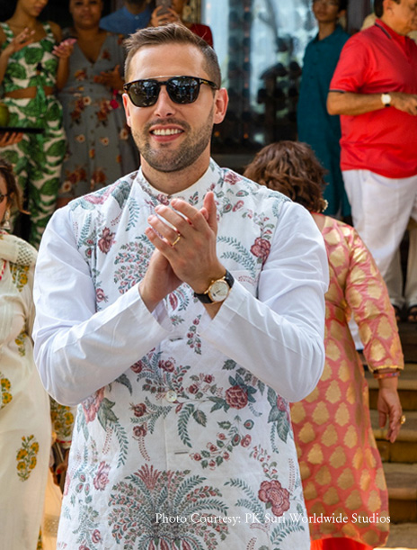 Nicolas sported an Indian attire, a kurta along with a floral bandi, for his mehndi function in Phuket.