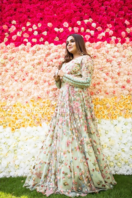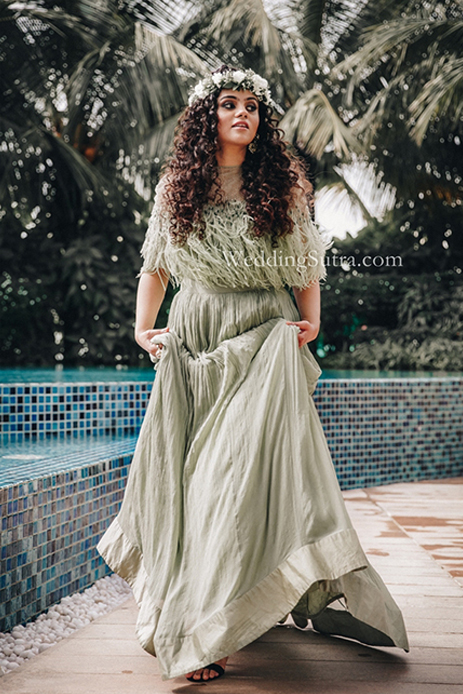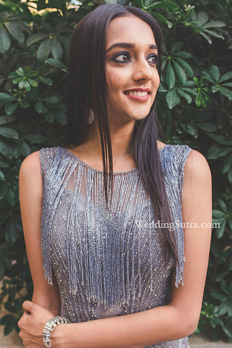 Have you ever seen a bohemian goddess? If you haven’t Mihila’s look is sure to change your answer to affirmative. The fluid fabric of her textured skirt and the dramatic bodice with sequins and feathery details were united in this breathtaking Ridhi Mehra gown. With her curly locks, warm bronzed makeup and a floral tiara she looked truly ethereal.
