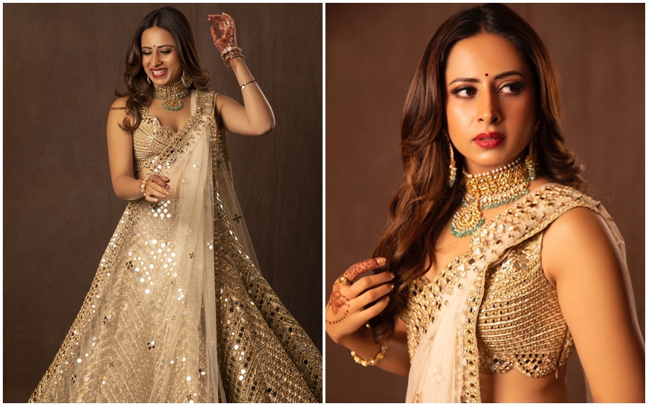 Sargun Mehta’s mirror work lehenga by Abhinav Mishra is the definition of elegant bling