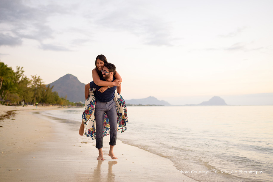 A magical pre-wedding shoot in Mauritius captured against the glow of the setting sun