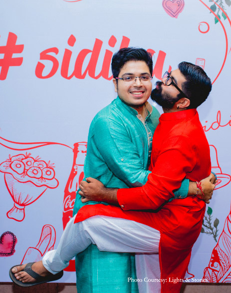 “Siddharth and I are non-drinkers and Coke fans. So we decided to have a ‘Coca Cola’ themed mehndi night. We designed a fun photo backdrop with props that were all things Coca-Cola. The best part of it was the tulsi saplings that we planted in Coca-Cola cans and distributed as giveaways. Sid even painted his shoes with custom Coke graphics.”