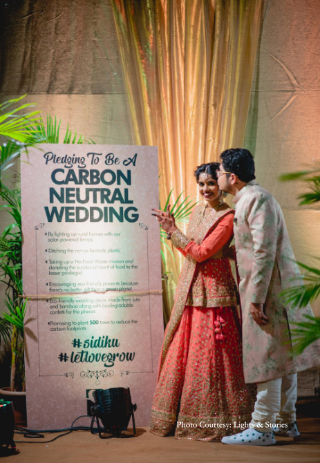 From zero use of flowers to recyclable cardboard chairs, Diksha and Siddharth pulled off a carbon-neutral wedding in style.