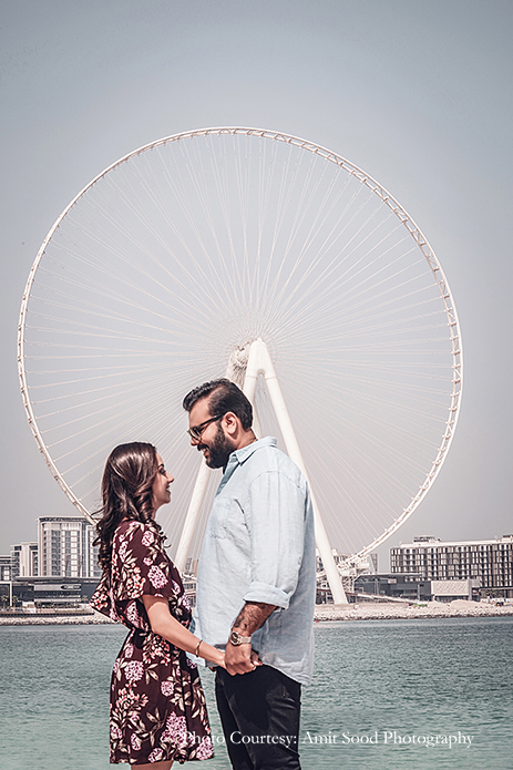 A favourite amongst tourists, Dubai proved to be a gorgeous location for Gurneet and Rajat’s pre-wedding photoshoot. The brilliant blue sea waves and warm desert winds provided stunning backdrops to the shoot, captured perfectly by Amit Sood Photography.