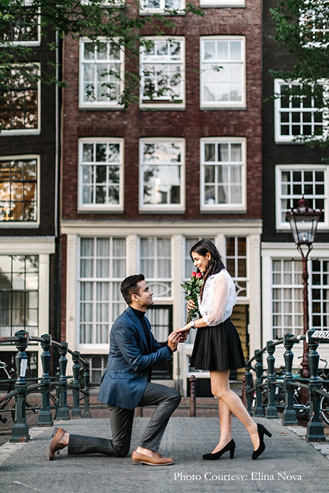 Amanpreet and Nitish’s pre-wedding shoot in the suave locales of Amsterdam by Elina Nova is a refreshing treat for the eyes. The shoot focuses on the couple having fun around the town, decked in formal outfits. The stunning facades of Amsterdam add charm to these pictures which perfectly encapsulate the love and bonding shared by the couple.