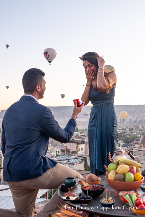 The fairy chimneys of Cappadocia in Turkey are known for their striking looks that also offer spellbinding views. These tall iconic rock formations house a number of inns and hotels which make for a unique experience. Sahil chose this enchanting region to propose marriage to Alifiya, here he tells us about their love story and how he went about planning the perfect proposal.