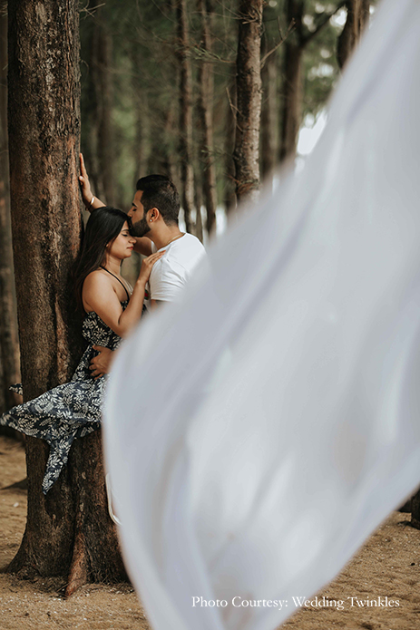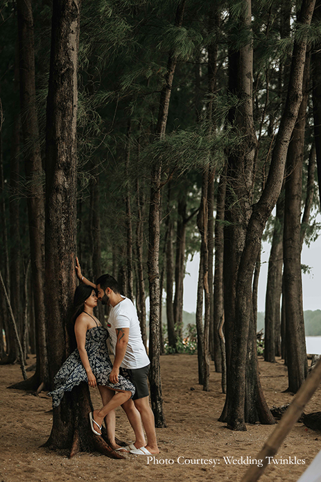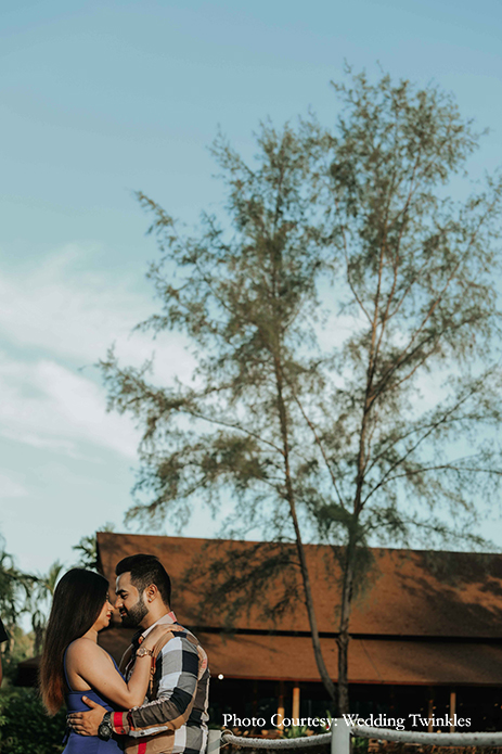 Kamakshi recalls, “The shoot unraveled extremely smoothly. We had no experience of a professional shoot and the experience was surprisingly fun. We had an amazing time just being with each other, exploring the gorgeous location, while our talented photography team captured just the right moments. The highlight was Kunal’s proposal to me with a ring in the pool!”