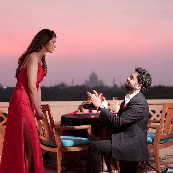 From a helicopter ride around the Taj Mahal to staying in the suite that hosted Jeff Bezos, a wedding proposal truly one to behold!