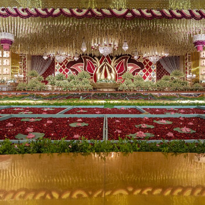 The A-Cube Project took luxury a notch higher by giving tradition a glamorous twist for this couple’s reception with a Sheesh Mahal-inspired decor!
