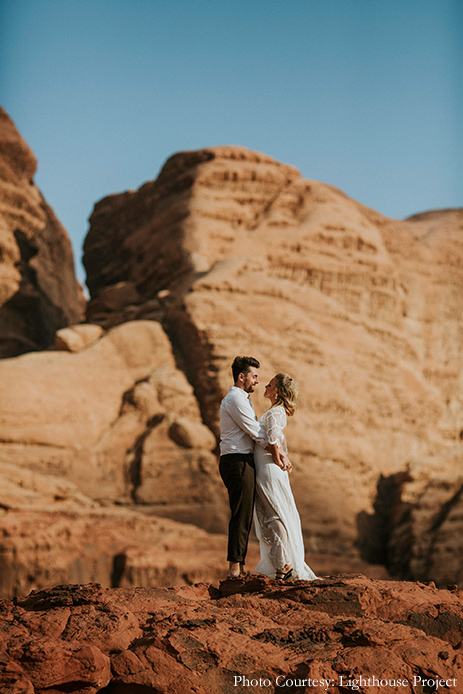 There isn’t a bride or groom in the throes of wedding prep who hasn’t fantasized about just grabbing their lover’s hand and running away from it all to get married in secret. There’s a thrilling aspect to the idea of eloping with your one true love – whether it is to escape obstacles to your union or just to focus unwaveringly on one another, not distracted by the bells and whistles of a traditional wedding. If you’ve thought about it then you may want to get inspired by this couple – who had their wedding and their elopement too amidst the stunning vistas of Jordan!