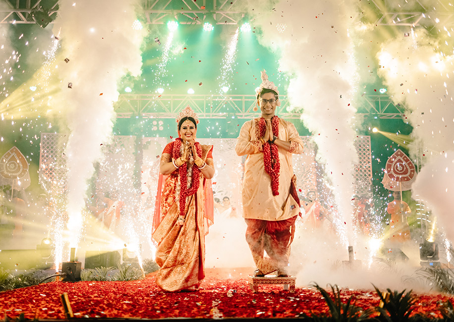 This couple’s wedding mandap with its red and white color palette was a heartfelt ode to their Bengali heritage