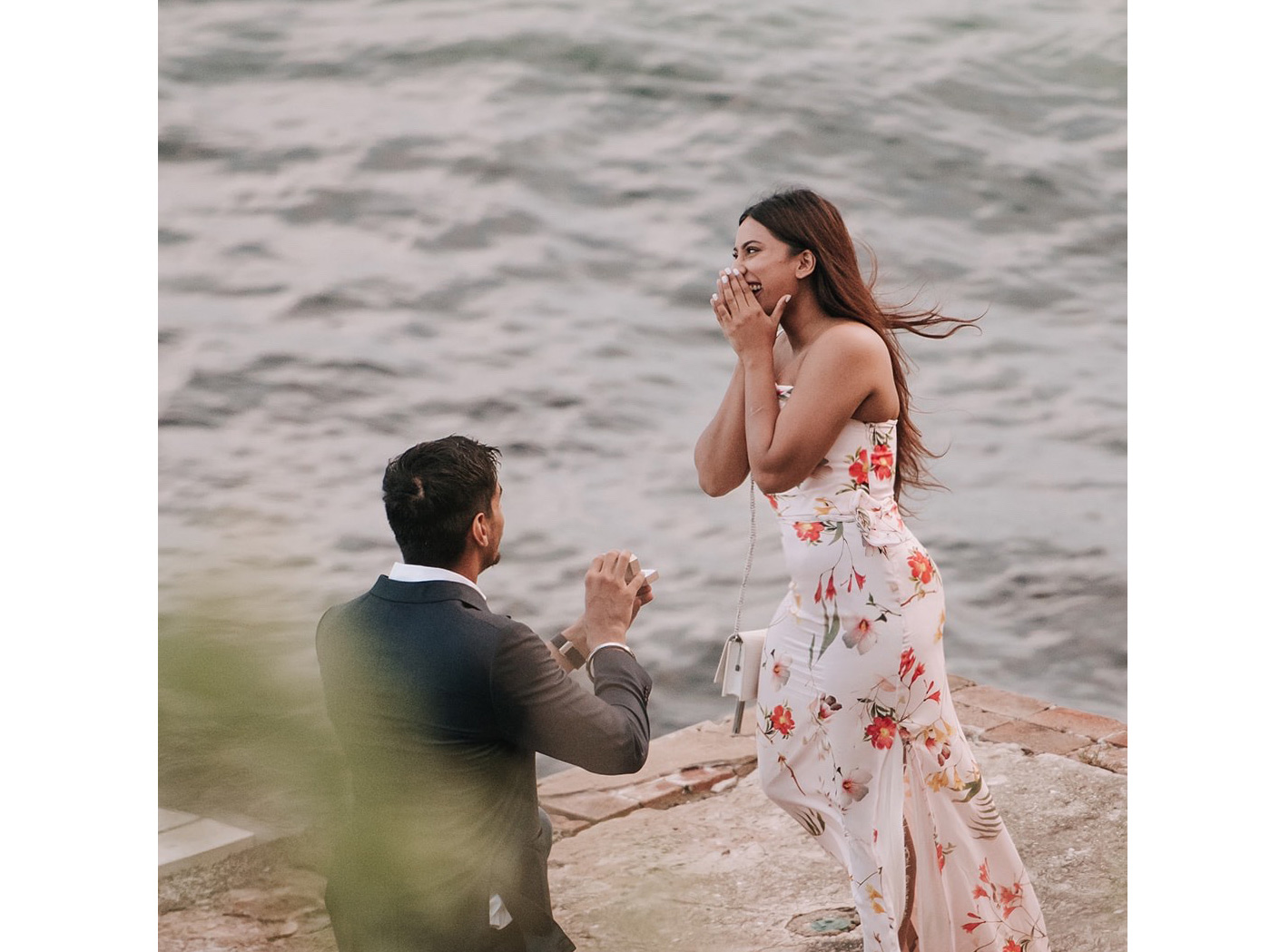 A tropical beachside wedding proposal that looked straight out of a Hollywood movie