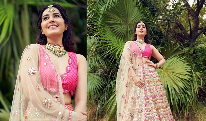 Raashi Khanna is a fashion-forward bridesmaid in this Abhinav Mishra lehenga