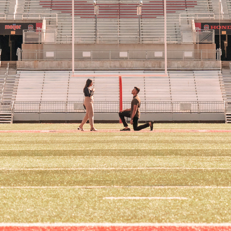 Honoring their shared love for football, this groom popped the question on the Jumbotron