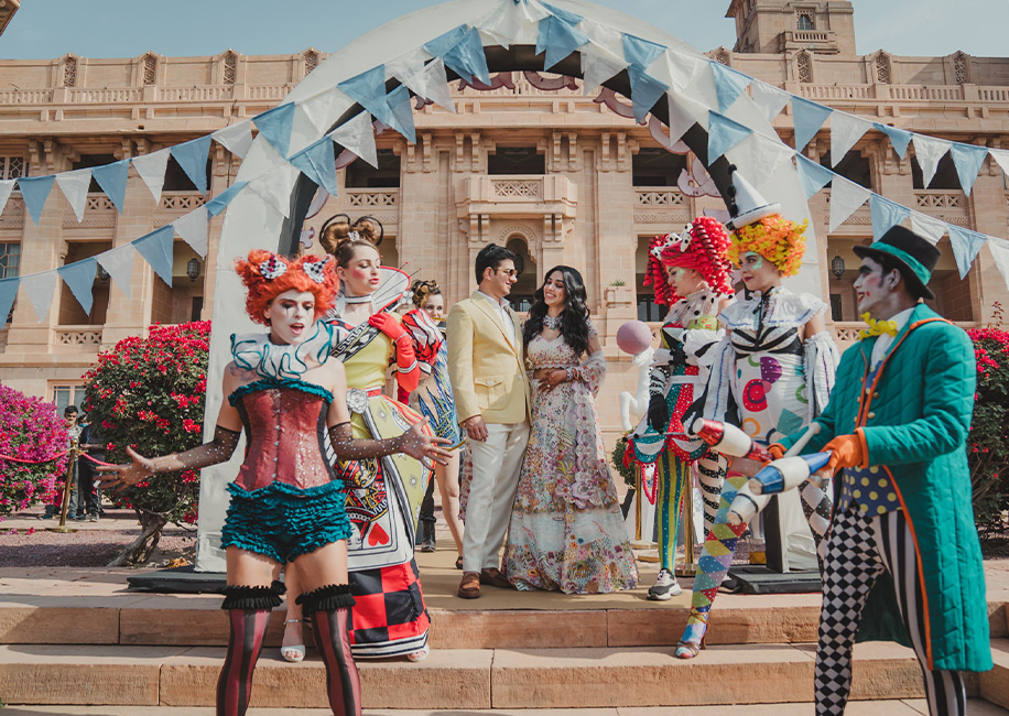 From vibrant flower markets to a 50s circus, this unique wedding at Umaid Bhawan Palace explored diverse themes!