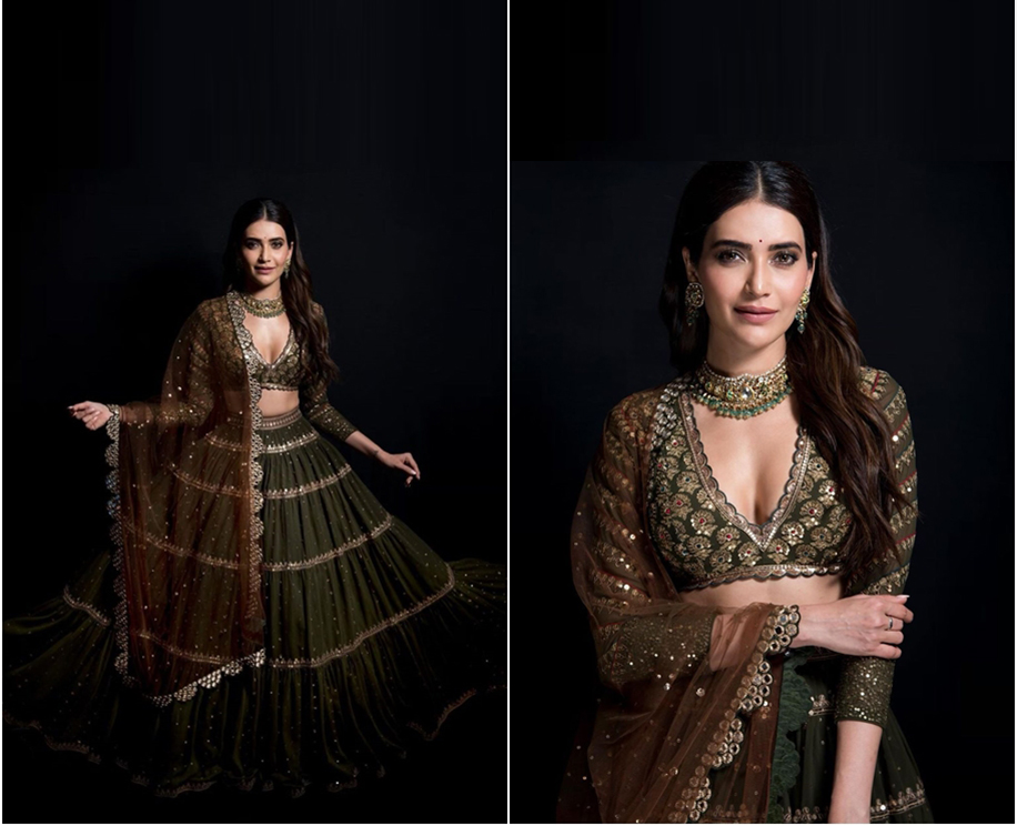 Karishma Tanna makes a case for olive hues in this Vani Vats Lehenga