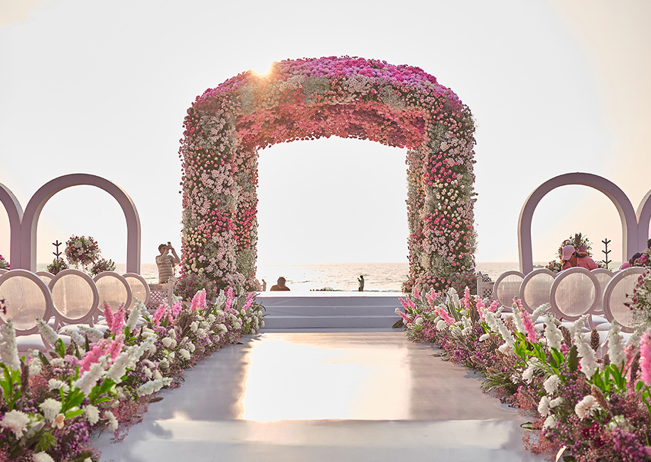 A seaside wedding where a flower-decked mandap with floral accents added to the timelessness of the moment
