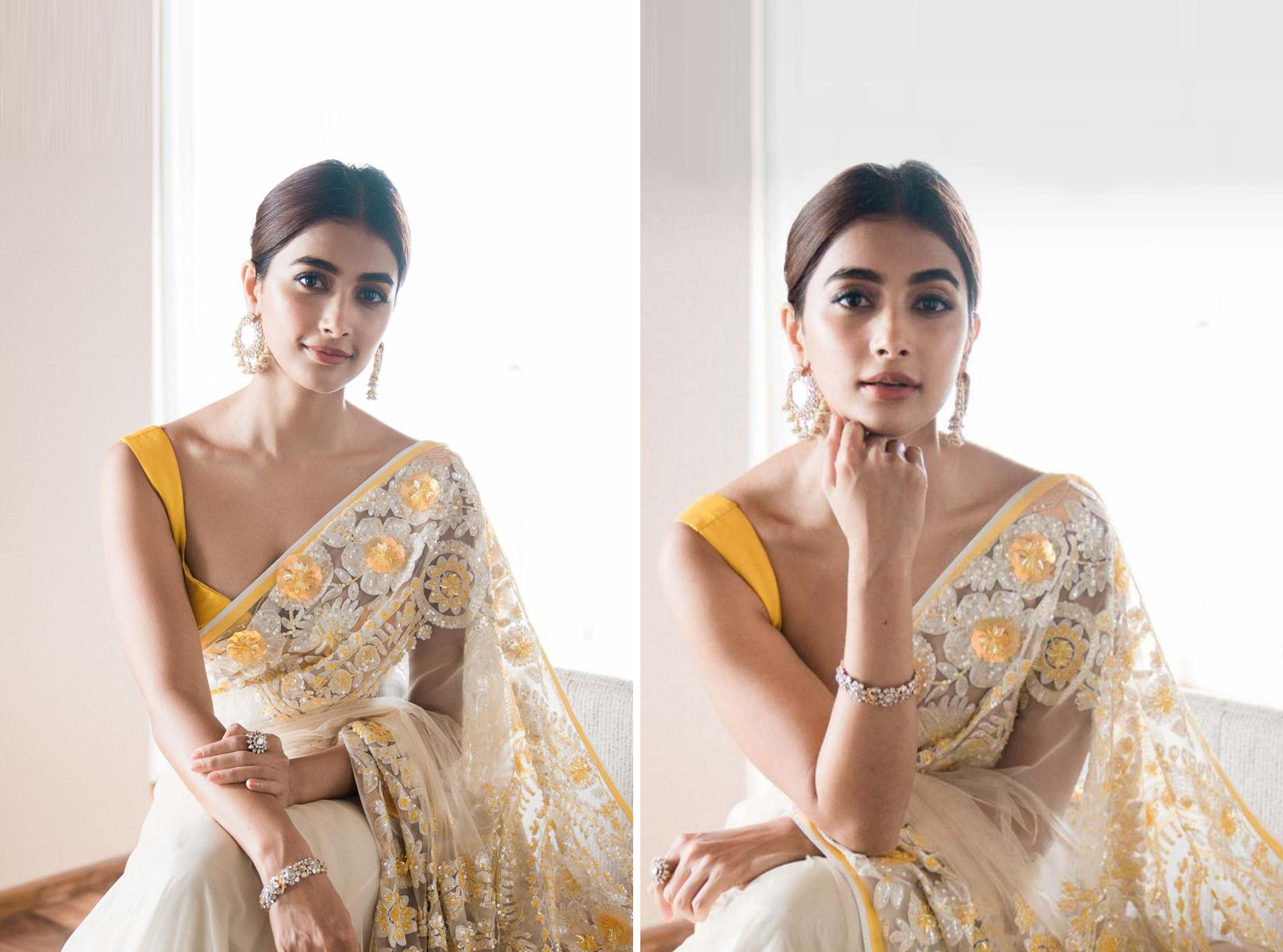 Pooja Hedge makes a case for breezy embroidered sarees for summer celebrations