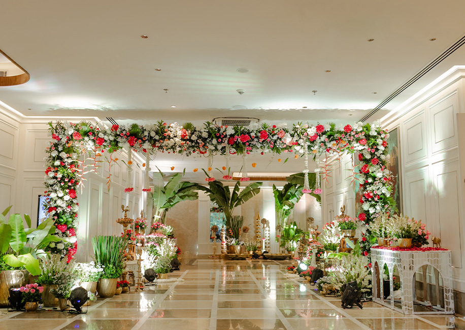 Set against a timeless palette of ivory, blush pink and gold, the couple’s pheras unfolded in a setting of effortless soft glamour