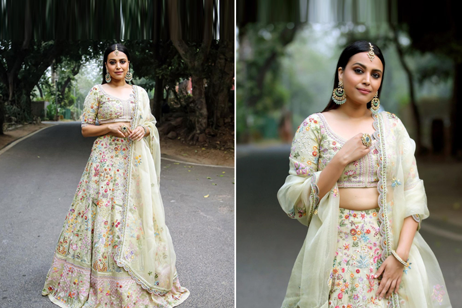 Swara Bhaskar’s beautifully embroidered Rahul Mishra lehenga is ideal for your daytime wedding