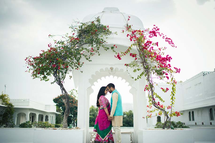Meha and Nikunj’s Pre-Wedding Shoot at Udaipur’s Taj Lake Palace, Rajasthan