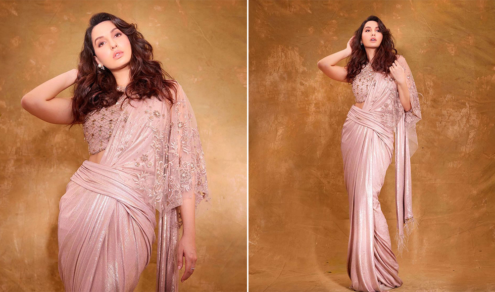 Nora Fatehi’s blush pink saree is a Cocktail Must-have!