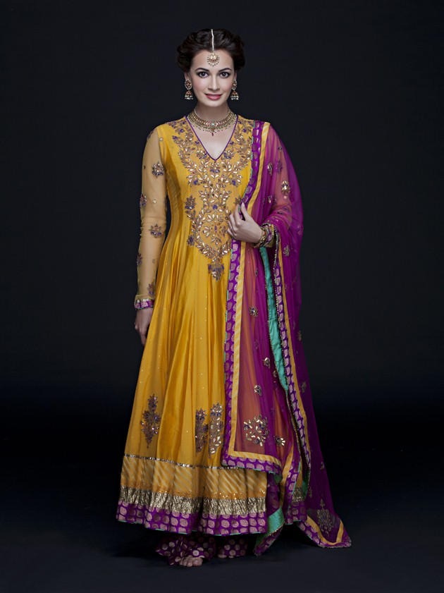 Dia Mirza wears a Ritu Kumar outfit for her Mehndi