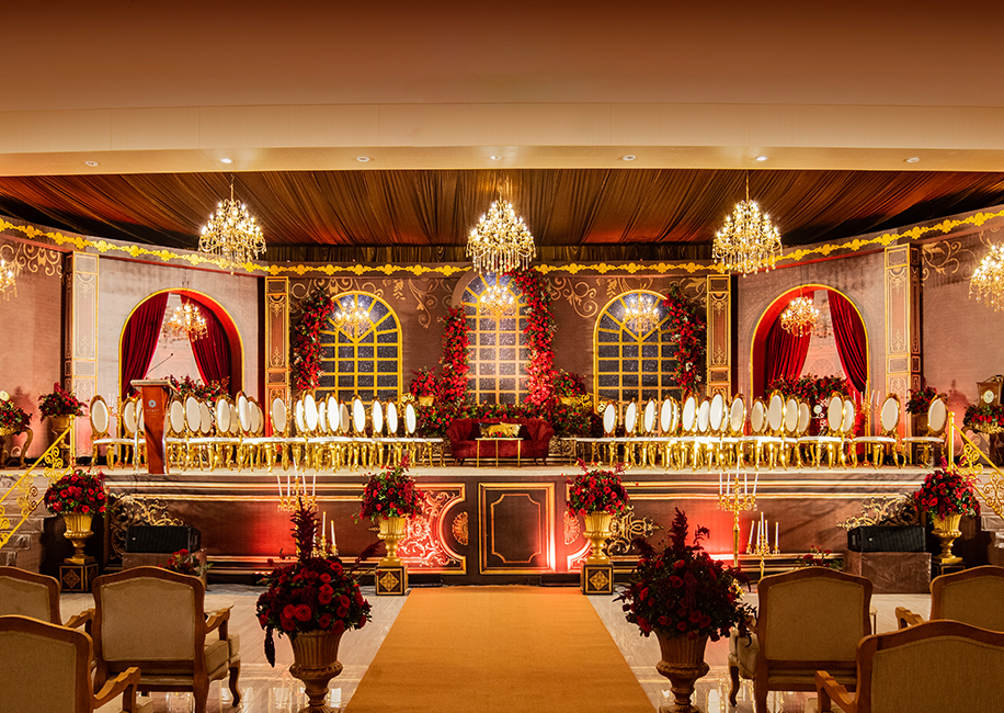 Inspired by Beauty and the Beast meets Bollywood – this couple’s engagement event was a luxurious celebration swathed in hues of red and gold