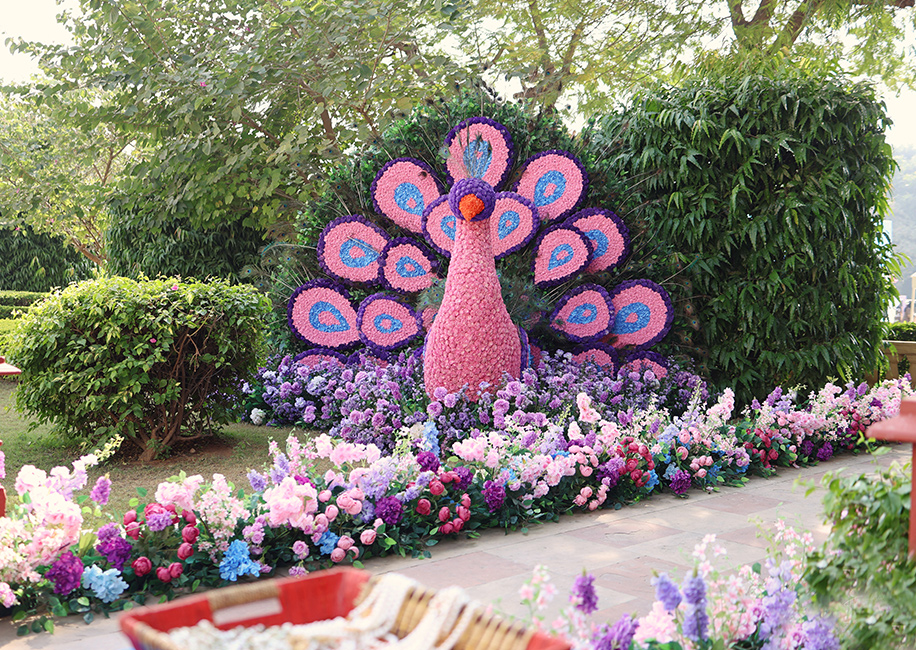 This “Mor Aangan” Mehndi decor came alive with floral artistry and enchanting peacock installations!