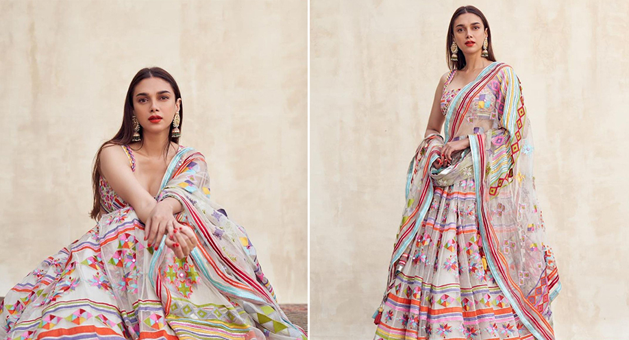 Actor Aditi Rao Hydari was recently seen wearing a stunning phulkari multi-colored embroidered lehenga by designer duo Sukriti & Aakriti...