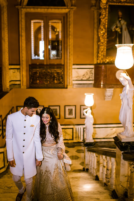 “My father-in-law and I loved the Taj Falaknuma Palace hotel in Hyderabad, and we decided on this venue for our wedding. The hotel is amazing and has such a royal feel that I wanted to do the pre-wedding shoot there as well. We wanted crisp and classy images that were not cheesy.”
