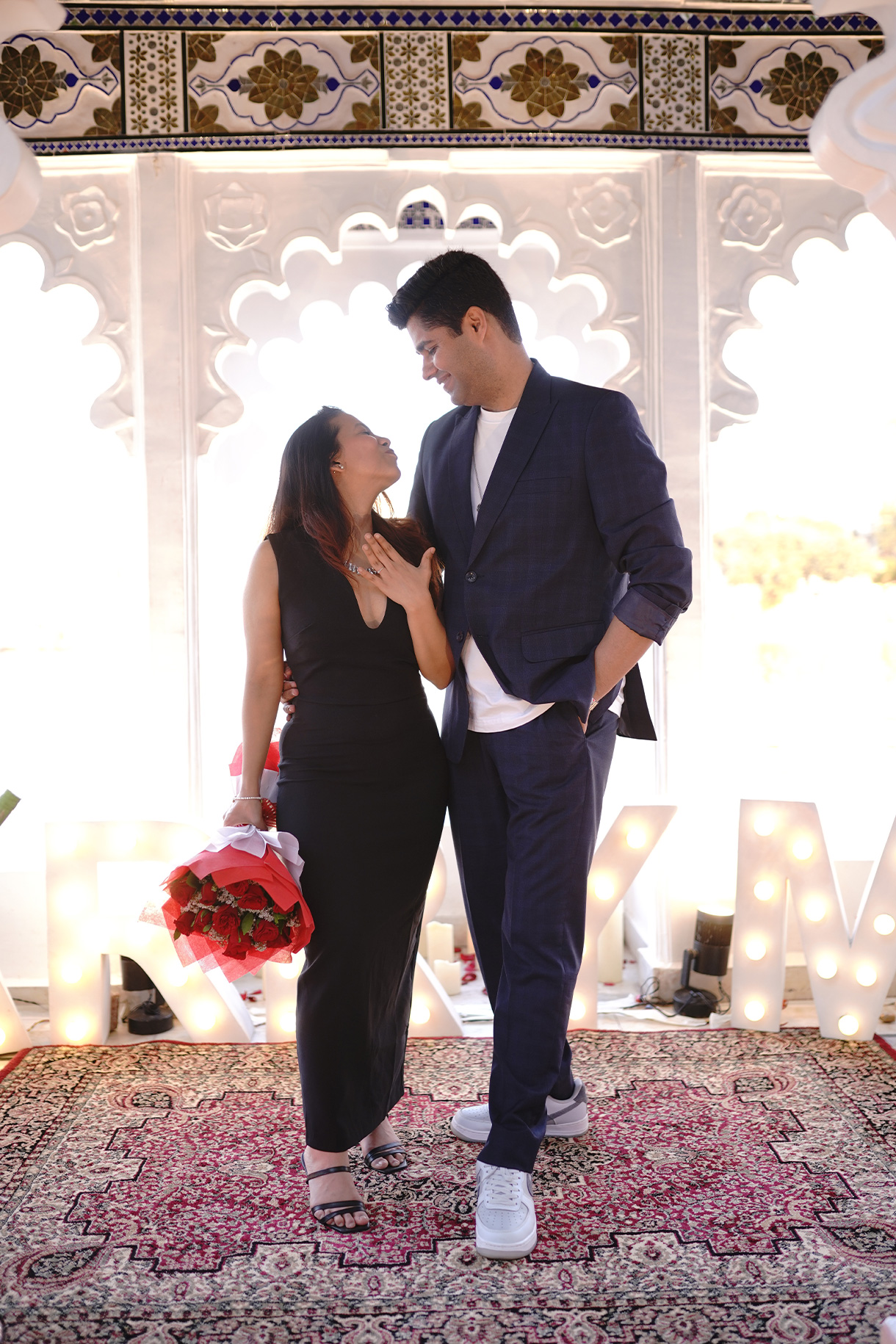 “Akshay, being the planner in our relationship, put together a beautiful trip to Udaipur. I, on the other hand, just wanted to go somewhere fancy and enjoy. Little did I know, this trip would change everything. From the moment we landed, things started going slightly off track. Our luggage got delayed, which meant my perfectly planned outfits were not an option. Still, I had a sneaky suspicion that something was up. Then, out of nowhere, he rushed me to get dressed. But did I figure it out? No, I was too busy getting ready for what I thought was just a really fancy dinner. When we arrived, he nonchalantly told me to put my shawl and bag down, and I refused.