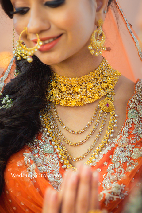 A land of rich cultural diversity, India often preserves its myriad distinctive identities through garments and ornaments which are an expression of its different ethnic backgrounds. In a country where clothing styles share a deep connect with traditions, it comes as no surprise that every bride brings along a touch of regional uniqueness to her look on her big day. In the latest edition of WeddingSutra on Location along with Kalyan Jewellers we imagined looks for the Marwari, Sikh and Gujarati bride. The fine jewellery cast in 22karat gold drew inspiration from their distinctive cultures and celebrated their individuality, making it priceless additions to their trousseau.