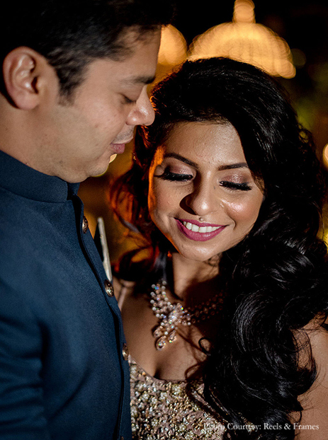 “I wanted the sangeet to have a mirror theme, and that is all I mentioned to ESL. They collaborated with the wedding decorators and gave us amazing decor that matched the theme perfectly. Gulmohar Gardens as a venue is stunning and to top it off, Shyam and I felt like royalty thanks to the grand entry that ESL planned for us. There were fireworks and sparklers all around us with the ‘Mastani’ girls dancing to the tunes. There were various surprise acts throughout the evening for guests followed by a family sangeet, where all our loved ones put in a lot of effort to practise the choreography and amaze everyone.”