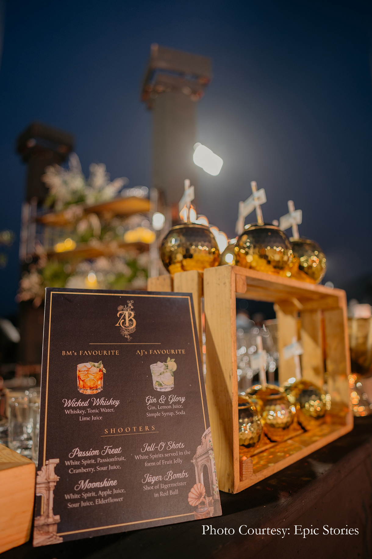 “The sangeet theme was ‘Glam Night in the Ruins’ and the team executed it perfectly. The monochrome theme was in perfect sync with the starlit night. Silver decor elements added a dash of glam while flashing lights put everyone in the mood to party”, shares Anushka.