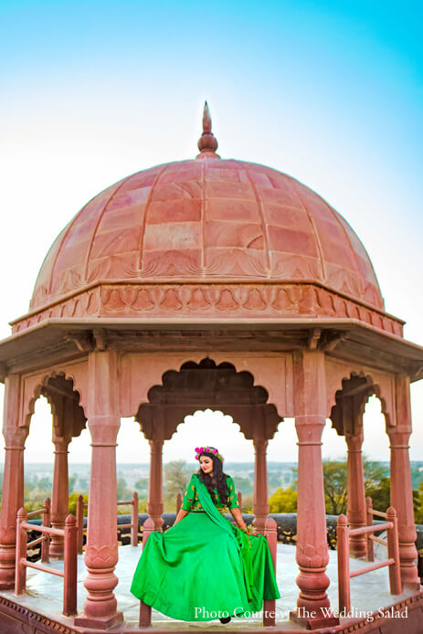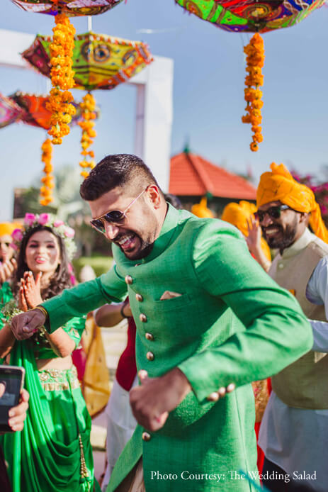 The mehndi ceremony was Rajasthan inspired. A section of WelcomHotel was festooned in tints of pink and green. To beat the desert heat, Thandai Spheres and Paan Caviar provided hydration and refreshment.