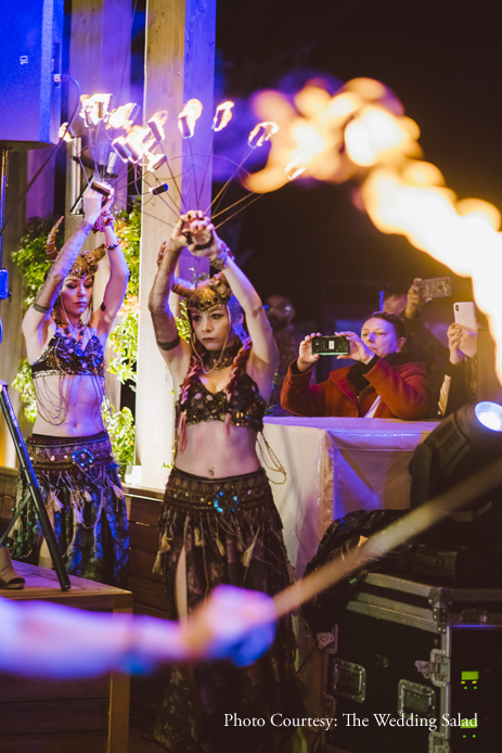 A Turkish Night, stilt walkers, and pheras on the pier enchanted all at Resham and Soham's waterfront wedding.