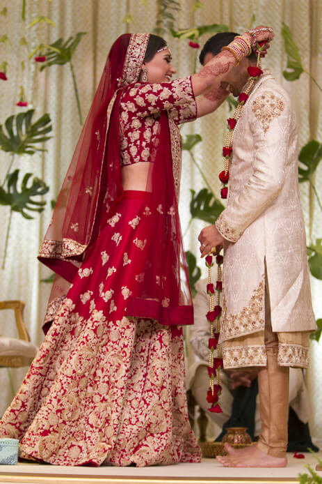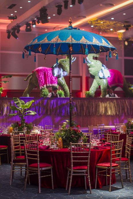 “As we had such an incredible pre-wedding shoot, Amore London suggested we incorporate the same into the theme of the big day. This is how ‘The Spirit of Bali’ was born. We loved the theme from the moment it was presented to us. We had life sized elephants that stood proudly next to our Balinese themed mandap and then took center stage in the midst of our custom made tikki bar at the reception. My bridesmaids entered with authentic Balinese prayer baskets with traditional offerings and Balinese incense. “