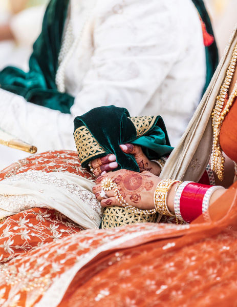 Seema and Sunny's wedding ensembles were customized to include motifs like constellations, 'nazar' symbols and a special tile design from the Golden Temple in Amritsar.
