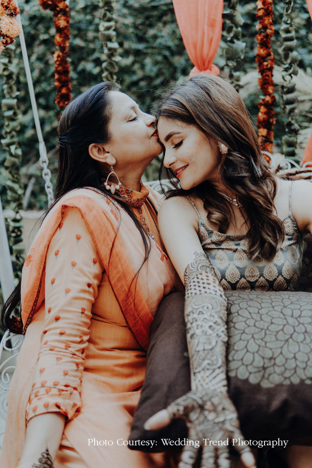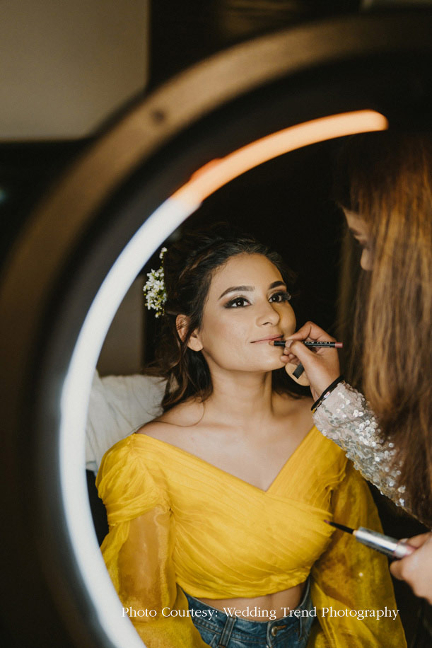 “I have a minimalistic style, which is why I stayed away from outfits and accessories that were too bold. I chose soothing colors for all three functions. For the mehndi, I wore an easy-breezy brocade sharara with noodle straps on my blouse. I completed the look with a classic choker and earrings set from Voylla. This was a small function at home, so I decided to do my makeup for this one.”