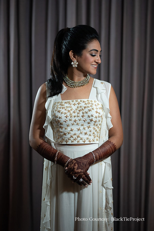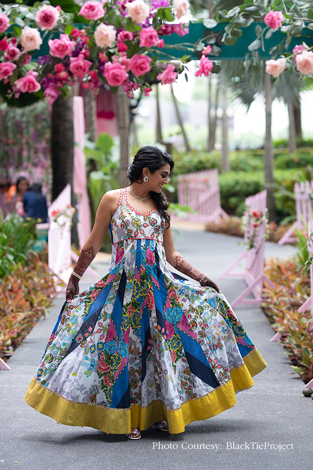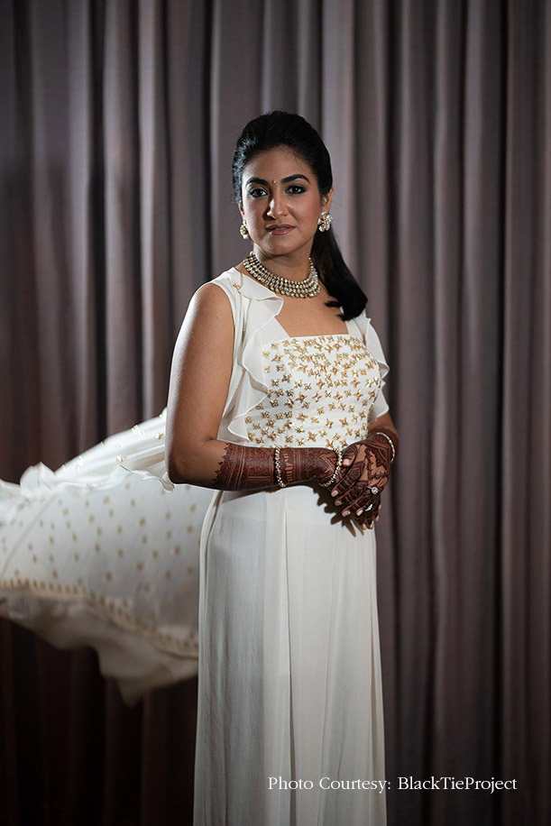 Looking perfect at your wedding functions involves much more than zeroing in on your favorite outfits. It’s about identifying and exuding your personal sense of style while not compromising on comfort. Bride Sherina meticulously planned her various looks, from the whimsical to high glamour and traditional, with a wide range of ensembles. Explore her different looks below.