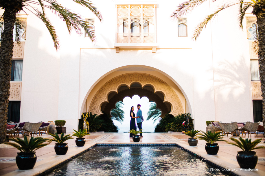 Framed by palatial Arabic architecture, this pre-wedding photoshoot in Abu Dhabi was steeped in glamour and luxury!