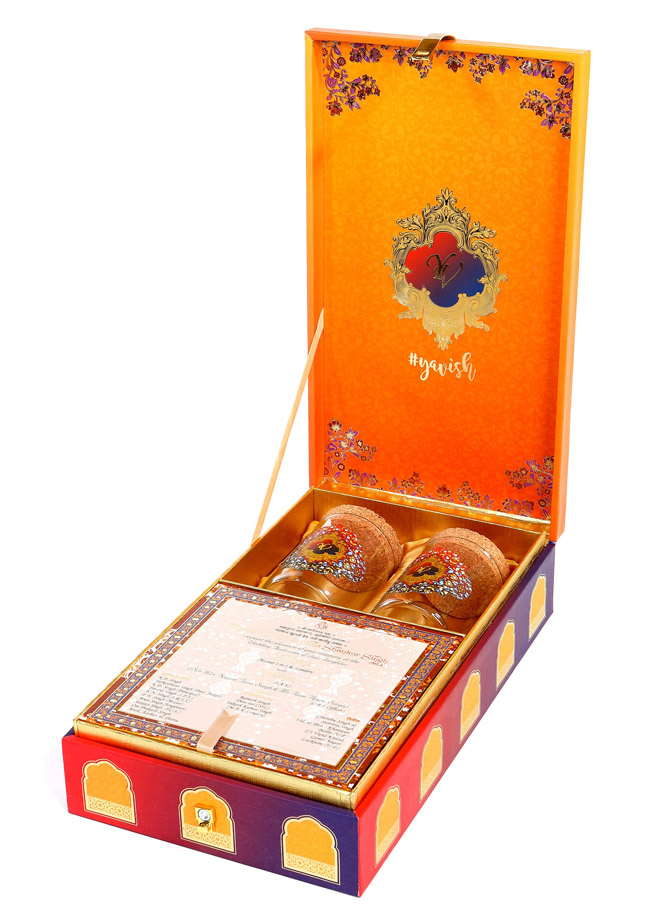Speaking about the logistics of this seemingly impossible task, she adds, “The invite we created was so much more than just decorated stationery. Each invite consisted of an individual box with cards, small gifts and local sweets curated and transported from various cities. It was packaged to perfection and hand-delivered, which made the job highly time-sensitive considering the edible components. It was definitely a learning experience for us. It also educated us on the undulating landscape of luxury in our country, and what it means to different people.”