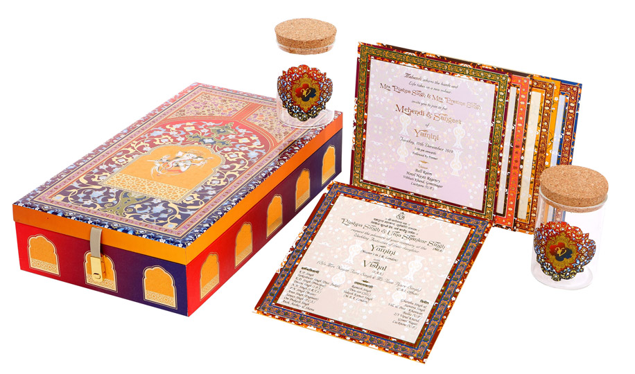 “Izhaar offers bespoke and customized designs; we have made some of the best luxury wedding invites in the country for several years now. Each creation at Izhaar is a handcrafted work of art. We are all about celebrating unbridled happiness, superlative achievements, joyous togetherness, and momentous occasions. When we were approached by Mr. Vishal Singh, an IAS officer who hails from one of the most prominent families in UP, to create invites for his wedding to I.R London-returned Yamini, we took it as an opportunity to fuse and showcase their personas and tastes into the design,” says Ruchita.