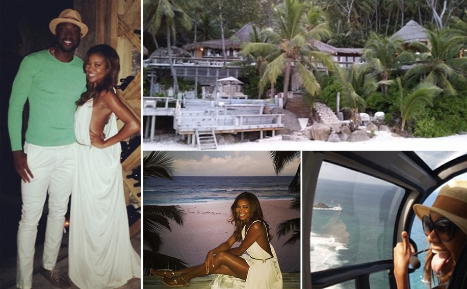 American actress and former model Gabrielle Union stayed at the private island resort of North Island in Seychelles on their final leg of her exotic honeymoon. The couple spent almost three weeks in exotic locations, first stopping in the Maldives, then going on safari and mingling with the Masai on the plains of the Serengeti in Tanzania, and then finally Seychelles.