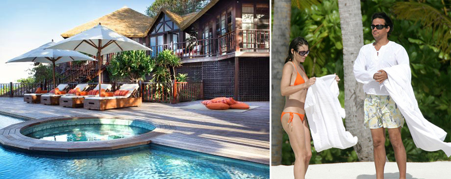 The private island eco-tourism resort is accessible by helicopter and regularly patronized by the rich and famous. The couple stayed at a villa which is perched on a rock away from the other ten villas on the island, ensuring complete privacy and luxury during their stay.