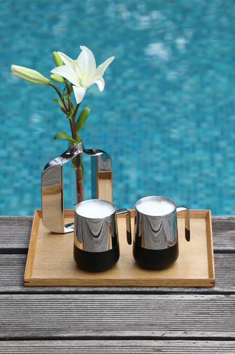 Love to Plan Cocktail Parties, Arttd’inox sets of bar essentials like ice-buckets, trays, and more combine sleek, functional design with chic metallic finishes, perfect for those with a minimalist home ethos.