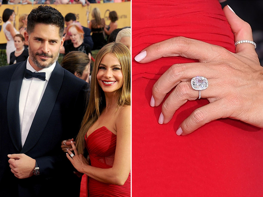 ‘True Blood’ star, Joe Manganiello proposed to ‘Modern Family’s Sofia Vergara with a vintage-style platinum halo ring. In the center sits a large cushion cut diamond. The piece is completed with a pave shank. Her beau presented the ring to her on Christmas morning and now who needs Christmas lights when you have a large sparking stone to flash!